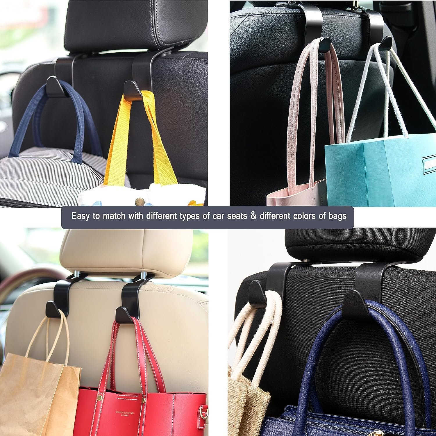 - Universal fit: sold by 4 packs and can be used conveniently, fit for most cars/ SUVs/ trucks (installation size: 0.32-0.55 inch in diameter of the headrest bar). Each item can hold up to 55 lb (25kg ), which meets the daily use in your car.