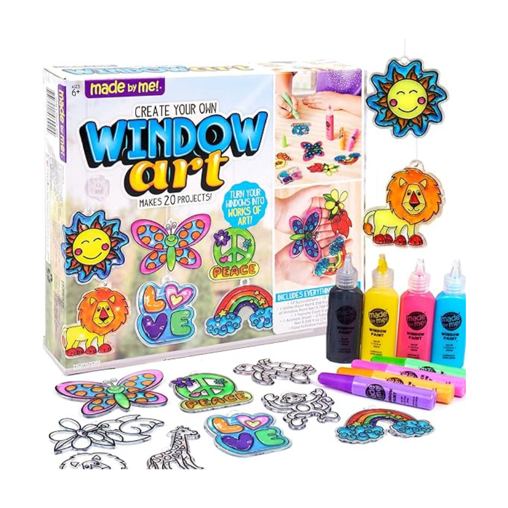 • KIT INCLUDES: 12 Suncatchers, 12 Suction Cups, 1 Bundle of Cording, 1 Acetate Sheet, 1 Glitter Window Paint Pen (10mL), 4 Window Art Paint Tubes (22mL), 3 Tubes Window Art Paint (10mL), Easy-To-Follow Instructions
